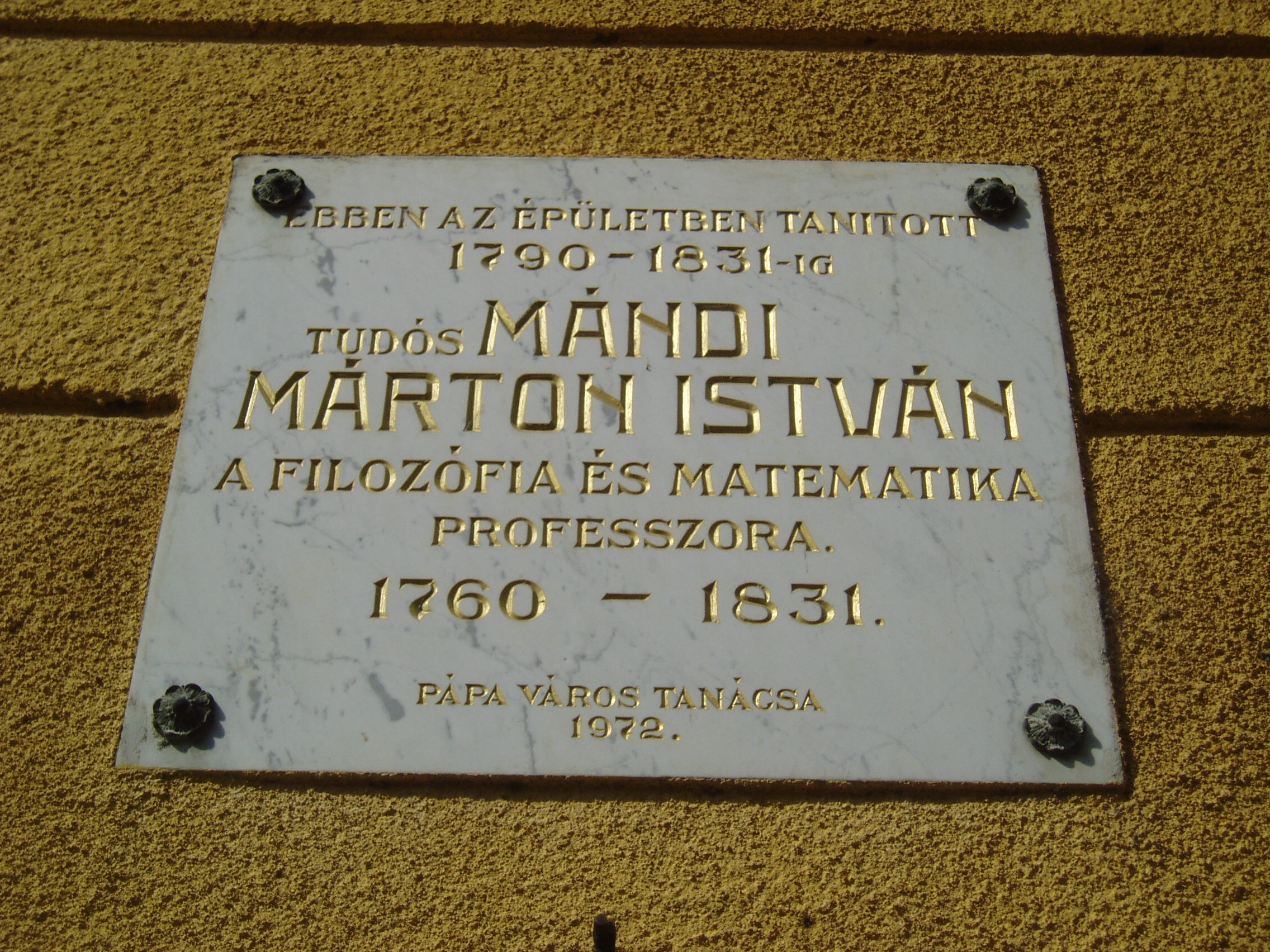 Nyilvános 1102 | 1907 | Pápa, Petőfi utca 13. Ókollégium | A híres pápai Református Kollégium első épülete 1531 és 1752 között a mai Ruszek közben, a Lábasház épületének helyén állott. 1752-ben - Mária Terézia rendeletének következtében - harminckét évig csak a közeli Adásztevelen működhetett. 1784-ben, II. József türelmi rendeletének köszönhetően térhetett vissza az iskola Pápára, s hamarosan felépült a később Petőfi Sándorról elnevezett utcában a most látható épület, amelyben 1794-ben indulhatott meg az oktatás. A jelentős tömegű, szögben megtörő késő barokk épület kimagaslik az utca XVIII-XIX. századi alacsony épületei közül. Homlokzatkiképzése egyszerű. Az épületbelsőben hangulatos, szűk folyosók és boltozatos szobák idézik a régi diákélet hangulatát. A főbejárat felett emléktábla örökíti meg egykori híres tanárainak és tanulóinak nevét. Az épületben tanított Mándi Márton István professzor. Ő volt az első Magyarországon, aki Kant filozófiáját - ebben az épületben - tanította. Az ő neéhez fűződik az adászteveli száműzetés után az iskola nagy fellendülése. A XIX. században híres tanárai voltak Tarczy Lajos és Bocsor István. Tarczy hirdette először Magyarországon katedráról a hegeli eszméket, amiért később le is kellett mondania a filozófia tanszékről. Ő volt a híres Képzőtársaság (az iskola önképzőköre) első elnöke. Egyénisége maradandó hatással volt irodalmunk számos későbbi kiválóságára, Petőfire, Jókaira, Eötvös Károlyra. (Lásd még: Pápa, Alsóvárosi temető; Pápa, Jókai u. 26.). Bocsor István 1837-től tanított itt. Magyar nyelvű történelemórái a város közönségére is nagy hatást gyakoroltak. A szabadságharc bukása után visszavonultan, tanári munkásságának élt. Alakját Kozma Andor: A karthágói harangok c. versében örökítette meg. (Lásd még: Pápa, Alsóvárosi temető; Pápa, Széchenyi u. 10.). Jeles tanár volt rajtuk kívül Váli Ferenc, Jókai Mór sógora (lásd még: Pápa, Alsóvárosi temető; Pápa, Jókai u. 20.). Ide járt iskolába az 1841/42-es tanévben Petőfi Sándor és Jókai Mór. Különösen Petőfi életében jelentett döntő momentumot az itt eltöltött időszak (lásd még: Pápa, Petőfi u. 11., Pápa, Jókai u. 13.). Az épületben tanult még Orlai Petrich Soma, Thaly Kálmán, Eötvös Károly, Kozma Sándor és mások. Az intézmény 1857-ig működött ezen a helyen, ekkor átköltözött a Március 15. tér 13-15. számú házba, az ún. Nátus-ba, majd 1895-ben utolsó végleles helyére, a Március 15. tér 9. számú monumentális épületébe. Az egykori Ókollégium ma (2007) gimnazista lányok diákotthona. Itt található a pápai születésű (lásd: Pápa, Március 15. tér 8.) Rab Zsuzsa költő és a Pápán is diákoskodott Hegyi Imre néprajztudós könyvtára. Rab Zsuzsa még életében adományozta könyvtárának jelentős részét a pápai alma maternek, míg Hegyi Imre könyvtára özvegye révén került a Református Gimnázium tulajdonába. A fénykép 2007 áprilisában készült. Felh. irod.: Németh Adél - Szabó Lajos: Pápa. Bp. Panoráma, 1989 Pápa. Szerk. Sz. Farkas Aranka. 2. kiad. Veszprém - Bp., Magyar Képek, 2000 |