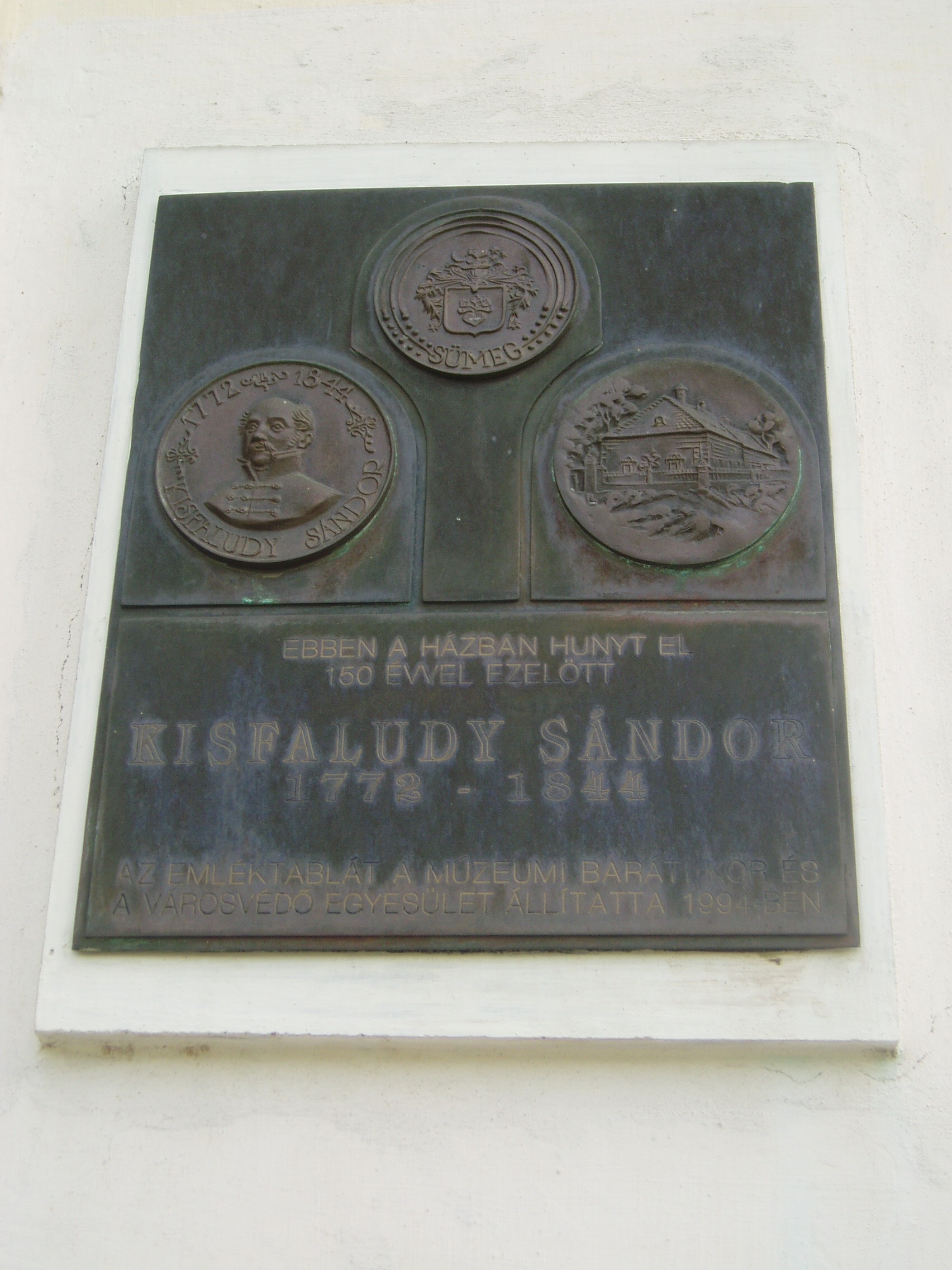 Nyilvános 1047 | 1607 | Sümeg, Kisfaludy tér 2. | Ebben a házban, amely ma a Városi Múzeum otthona, született és halt meg Kisfaludy Sándor. A XVII. században épült ház eredetileg a Sándorffy család tulajdona volt, a Kisfaludyakra örökség útján maradt. A XIX. században klasszicizáló stílusban többször is átépítették a boltíves barokk kúriát, ittlakása idején Kisfaludy Sándor is bővíttette. A költő 1772. szept. 27-én látta meg itt a napvilágot. Hat éves volt, amikor a család Tétre költözött (Károly öccse ott született 1788-ban). Eseménydús ifjúsága volt. 1793–1796 között a bécsi testőrség tagja. Részt vett a franciák elleni hadjáratban, fogságba is esett. 1799-ben leszerelt, a következő évben feleségül vette Szegedy Rózát. A házaspár Ötvös-pusztán, majd Kámban lakott. Sümegre 1805-ben pedig költöztek, itt éltek halálukig. Miután 1832-ben elveszítette szeretett feleségét, az idős költő újra megnősült, azonban második felesége, Vajda Amália is hamarosan meghalt. Ő maga itt, otthonában hunyt el 1844. október 28-án. Sírja a sümegi temetőben van (lásd: Sümeg, Temető). Kisfaludynak volt még egy ingatlana Sümegen, egy ma is álló présház (Sümeg, Külterület XI. 200). Sok időt töltött ott is, s ott vetette papírra az inszurrekció kudarcos történetét. A házat emléktábla jelöli, mellette áll Kisfaludy tölgyfája, amelyet a hagyomány szerint a költő ültetett (sajnos, fénykép nincs róla, nem találtam meg, amikor Sümegen jártam - K. K.). A fénykép 2007 júniusában készült. Felh. irod.: Koppány Tibor - Kozák Károly: Sümeg útikalauz. Veszprém, Idegenforgalmi Hivatal, 1965 Sümegi kalauz. Sümeg, Sümegi Fórum alapítvány, 1993 Kisfaludy Sándor. Veszprém, Veszprém Megyei Múzeumi Igazgatóság. /Pannon Panteon 1./ |