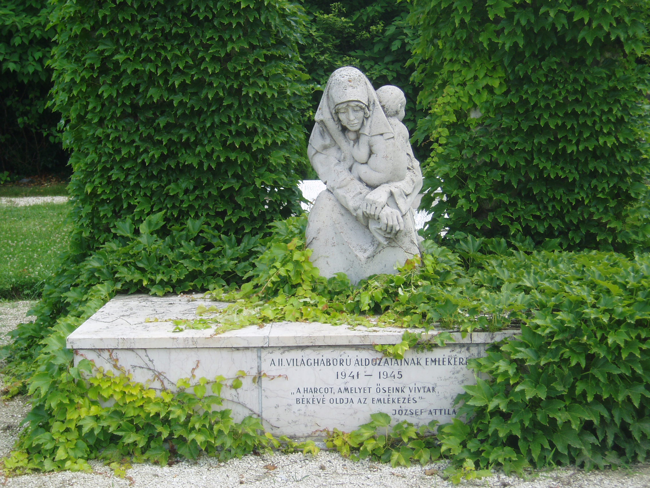 Nyilvános 1052 | 1595 | Sümeg, Kossuth utca 35. után | Az Eitner-ház (lásd: Kossuth u. 35.) északra néző oldalhomlokzata egy kis parkra tekint. A két világháború között itt állt az Országzászló, később pedig a szovjet emlékmű. 1991-ben itt állították fel a második világháború sümegi áldozatainak emlékművét, Marton László szobrászművész alkotását. A fénykép 2007 júniusában készült. Felh. irod.: Koppány Tibor - Kozák Károly: Sümeg útikalauz. Veszprém, Idegenforgalmi Hivatal, 1965 Látnivalók Veszprém megyében. Miskolc, Well-PRess, 2004 Sümegi kalauz. Sümeg, Sümegi Fórum alapítvány, 1993 |