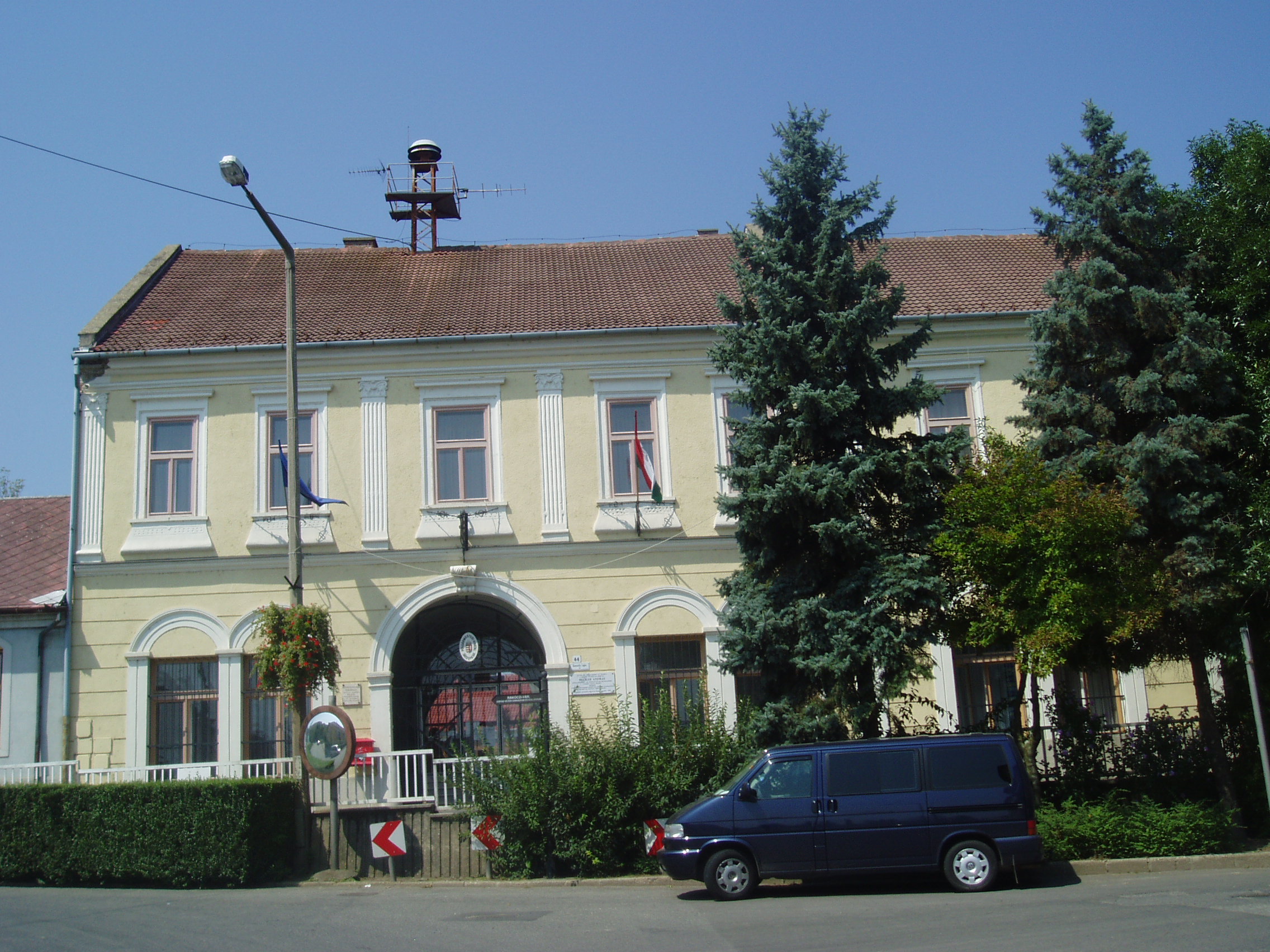Nyilvános 1040 | 1901 | Sárospatak, Kossuth utca 44. Városháza | A városháza műemlék jellegű épülete XVIII. századi barokk épületrészek felhasználásával a XIX. században nyerte el mai alakját. Homlokzatán 2007-ben avatták fel Becker András emléktábláját. A fiatal, katonaviselt gazdálkodó a Tanácsköztársaság idején fel akarta venni a harcot a vörösök ellen. Tevékenységét leleplezték, s tűzharc során fogták el. A Sátoraljaújhelyről kiküldött forradalmi törvényszék halálra ítélte. Nagy tömeg jelenlétében akasztották fel a városháza kapujának vasrácsára. A fénykép 2007 augusztusában készült. Felh. irod.: Váry Albert: A vörös uralom áldozatai Magyarországon. Reprint kiadás, 1993 |