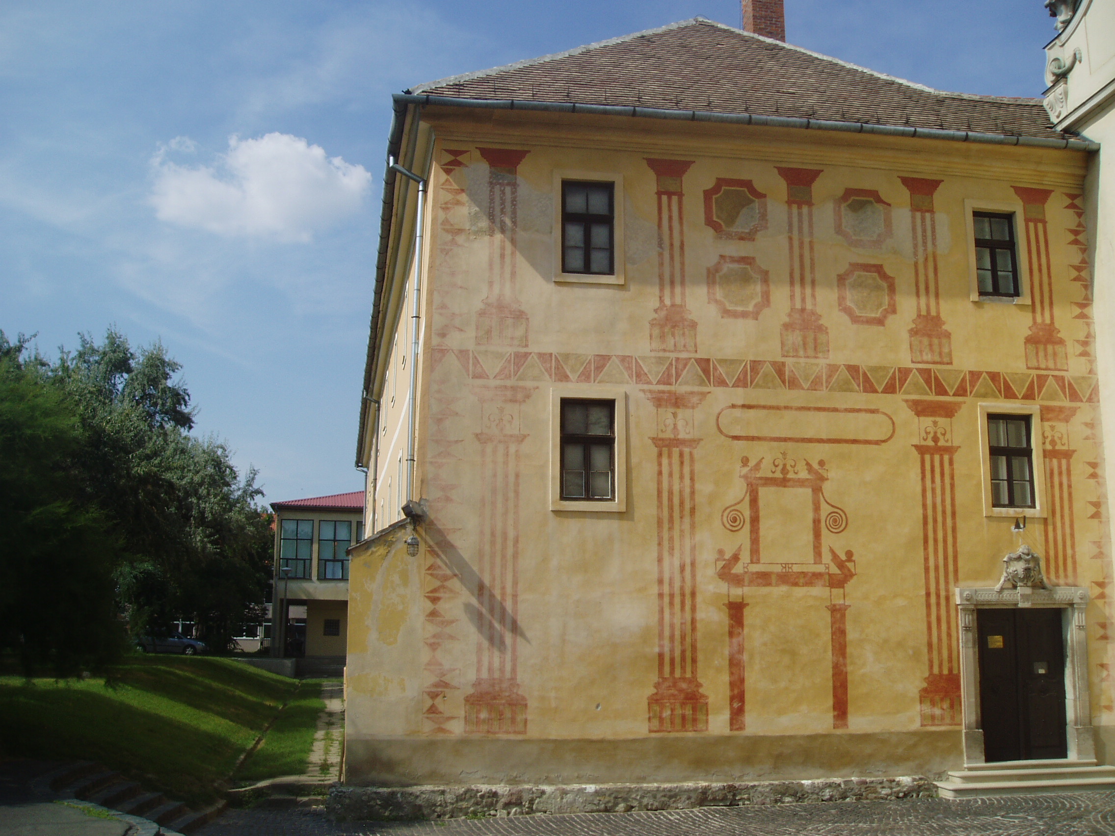 Nyilvános 1031 | 1527 | Sátoraljaújhely, Deák Ferenc utca 10-12. Piarista rendház | Sátoraljaújhely legértékesebb műemlék együttese, a piarista rendház, templom és gimnázium a város legősibb részén, az ún. Barátszeren található. A településrész az egyetlen magyar alapítású szerzetesrendről, a pálosokról kapta nevét. A rend már a XIII. század második felében megkezdte itt kolostorának, majd valamivel később templomának építését. A korábban kétszintes rendházat 1698-ban bővítették kétemeletesre. Templom felőli oldalát barokk architektonikus falfestés díszíti. Földszinti kerengője árkádokkal nyílt a belső udvar felé, a kerengő déli részének gótikus keresztboltozata méltóságteljes látványt nyújt. A refektórium - az egykori ebédlő - mennyezetén gazdag, festett stukkódísz látható. Egykor itt működött a pálosok, majd a XVIII. század végétől utódaik, a piaristák által fenntartott iskola. Több jeles iskolai színjátékot is bemutattak itt, 1765-ben például azt a Bacchus-drámát, melyben maga Apollo irigyli el Bacchustól tokaji székhelyét. Ugyancsak itt keletkezett a ma is közkedvelt Kocsonya Mihály házassága című darab is. Kossuth Lajos 1810 és 1816 között még e falak közé járt iskolába (a mai gimnázium helyén álló első épület csak 1820-ra készült el). A fénykép 2007 augusztusában készült. Felh. irod.: Látnivalók Borsod-Abaúj-Zemplén megyében. Miskolc, Well-PRess, 2003 www.satoraljaujhely.hu/nevezetessegek www.vendegvaro.hu |