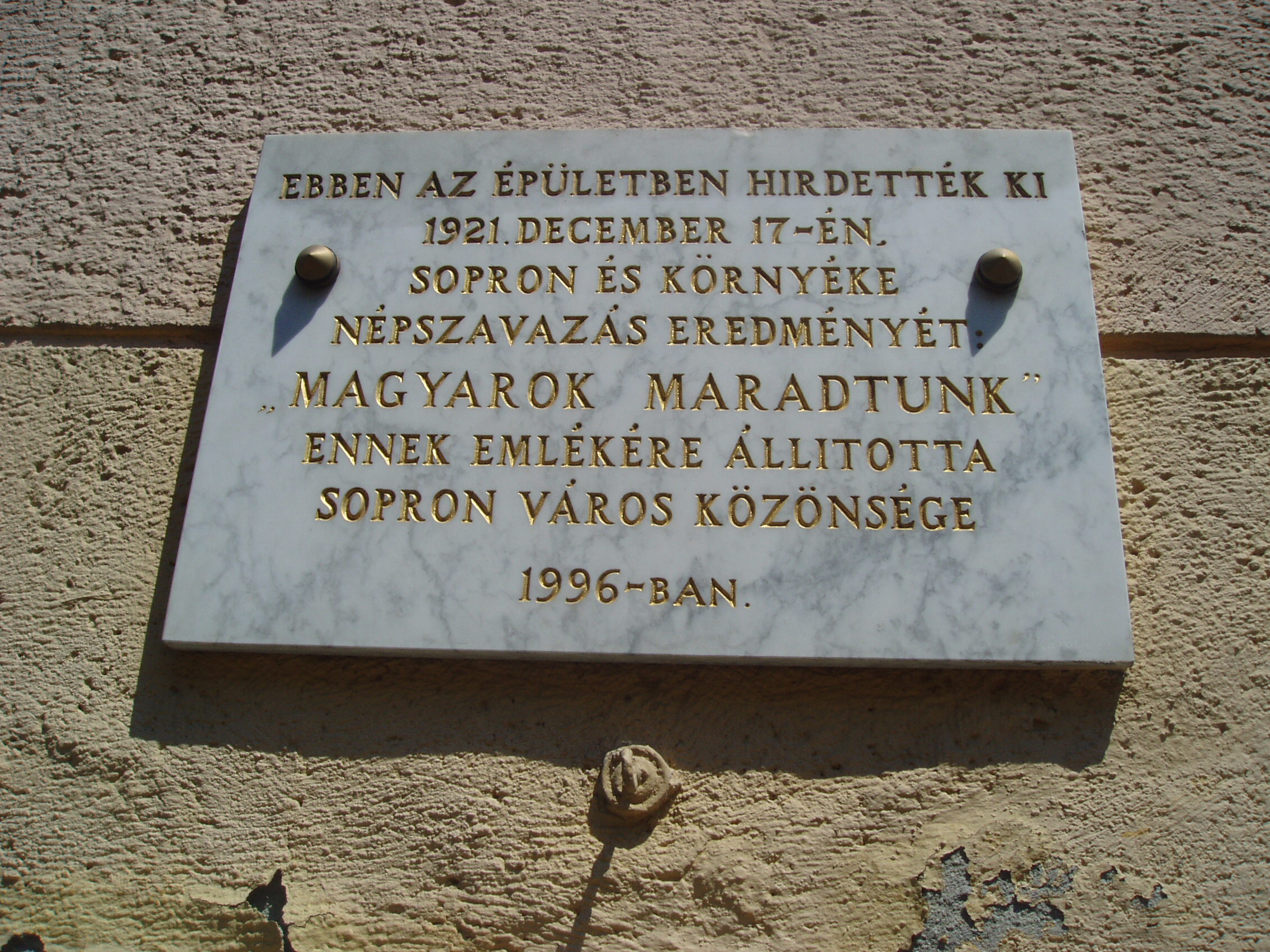 Nyilvános 1014 | 1352 | Sopron, Rákóczi utca 8. | Ebben az épületben működött 1944-ig a Magyar Királyi Zrínyi Ilona Honvédtiszti Leánynevelő Intézet. 1921. december 17-én itt hirdették ki a Sopron sorsát eldöntő népszavazás eredményét. A kép 2008 júniusában készült. |