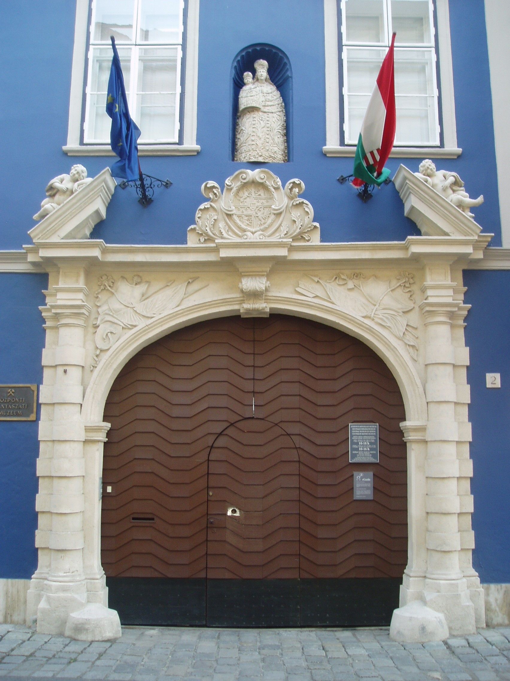 Nyilvános 1060 | 1398 | Sopron, Templom utca 2. Esterházy-palota | Az egyemeletes barokk Esterházy–palota eredete a XV. századig nyúlik vissza. 1752-ben Esterházy Pál Antal vette meg, s homlokzatát ezután alakították át a mellette levő (Templom u. 4.) régebbi Esterházy–palota mintájára; az épület udvari része azonban megtartotta a XVII. századbeli formákat. Homlokzatán a kapu feletti ablakok közötti félkör alakú fülkében a máriacelli kegyszobor kőmásolata, alatta az Estreházy-címer látható. A XVII. században ebben a házban lakott Rauch András (1592–1656), az evangélikusok karnagya, jeles zeneszerző, akit napjainkban kezdenek újra felfedezni. Az épület ma a Központi Bányászati Múzeum otthona. Bástyakertje nyáron kosztümös barokk hangversenyek színhelye. A kép 2008 júniusában készült. Felh. irod.: Czellár Katalin: Sopron. 3. jav. kiad. Bp. Panoráma, 2000 |