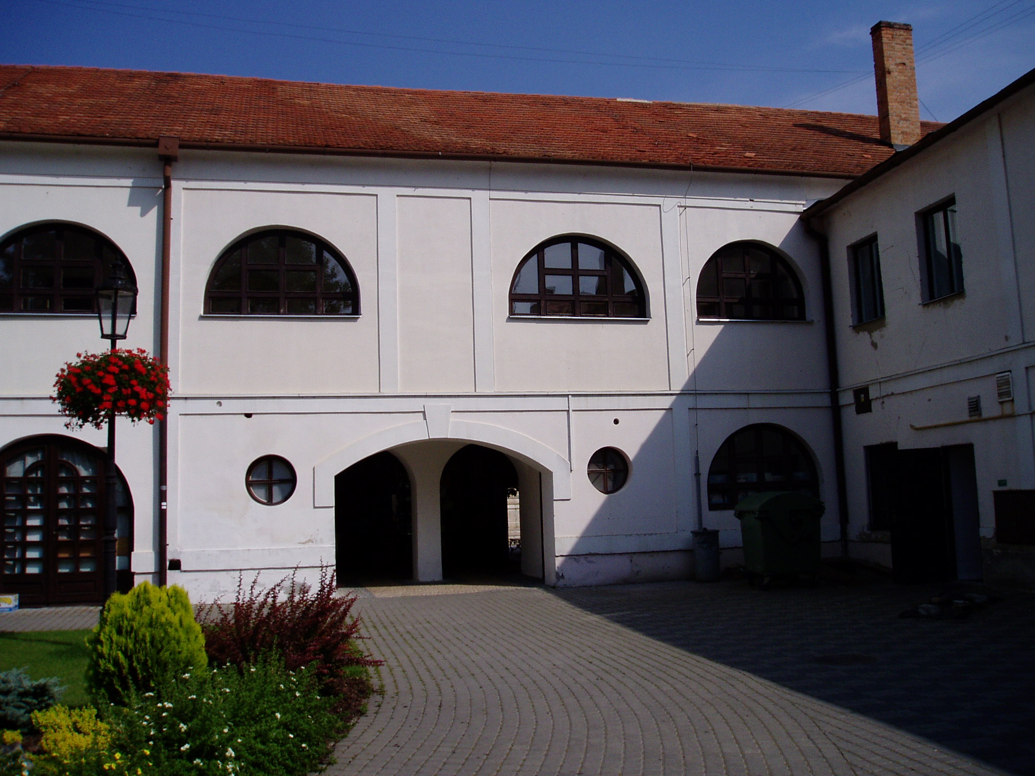Nyilvános 1087 | 2180 | Komárom (Komárno). Klapka tér 9. Zichy-palota (udvari homlokzat) | A Klapka tér legnagyobb épülete a volt Zichy–palota. Zichy Miklós gróf, szabolcsi főispán építtette a XVII. század második felében. Eredetileg barokk stílusú volt, de miután a 1763-as nagy komáromi földrengés romba döntötte, klasszicista stílusban épült újjá, két épületszárnnyal bővülve. Udvarának végén az 1800-as évek elejétől 1827-ig emeletes épület állt, ennek emeleti részén tartották a táncmulatságokat és a színházi előadásokat. Az első hivatásos magyar színtársulat Komáromban Benke József és Kemény János vezetésével lépett fel 1811 májusában (ők a második pesti színtársulatból váltak ki). A társulatban ott volt Balogh István, Déry István, Láng Ádám, Murányi Zsigmond, Murányiné Lefèvre Teréz és a pályája legelején levő, tizennyolc éves Scheckenbach (Schenbach) Róza, aki később Déryné Széppataki Róza néven vált a magyar játékszín történetének állócsillagává. Legközelebb Balogh István székesfehérvári társulata jutott el Komáromba, valamikor 1813 és 1815 között. Szinnyei József szerint ennek a társulatnak Katona József is tagja volt, s Idegen művésznéven fellépett itt a Hamlet címszerepében és saját, Luca széke című darabjában. 1819 októberében Kilényi Dávid kecskeméti társulata érkezett a városba. Előadásaikról Ásvay Jókay József, Jókai Mór édesapja tudósított a helyi sajtóban. A közelmúltban a Zichy–palota udvarán építették ki az ún. Európa udvart. A helyi viszonylatban gigantikus méretű vállalkozás célja, hogy élőben mutassa be harmincöt európai ország építészetét. A városrész egyben Komárom új szolgáltató központja is, üzletekkel, éttermekkel, kávézókkal, valamint egy föld alatti bevásárlóközponttal. A palota első emeletén (bejárat a Szentháromság–szobor melletti kapun) a város két híres szülötte, Jókai Mór és Lehár Ferenc emlékkiállítása látható. Különösen a Jókai-kiállítás gazdag eredeti relikviákban. A fénykép 2005. júliusában készült. Felh.irod.: www.komarno.sk Mácza Mihály: Komárom nevezetességei. Pozsony, Madách-Posonium, 2002 Szénássy Zoltán: Rév–Komárom. KT Kiadó, 1998 Tóth László: "...miként hajdan az apostolok" : a komáromi magyar színjátszás története. Dunaszerdahely, Lilium Aurum, 1997 |