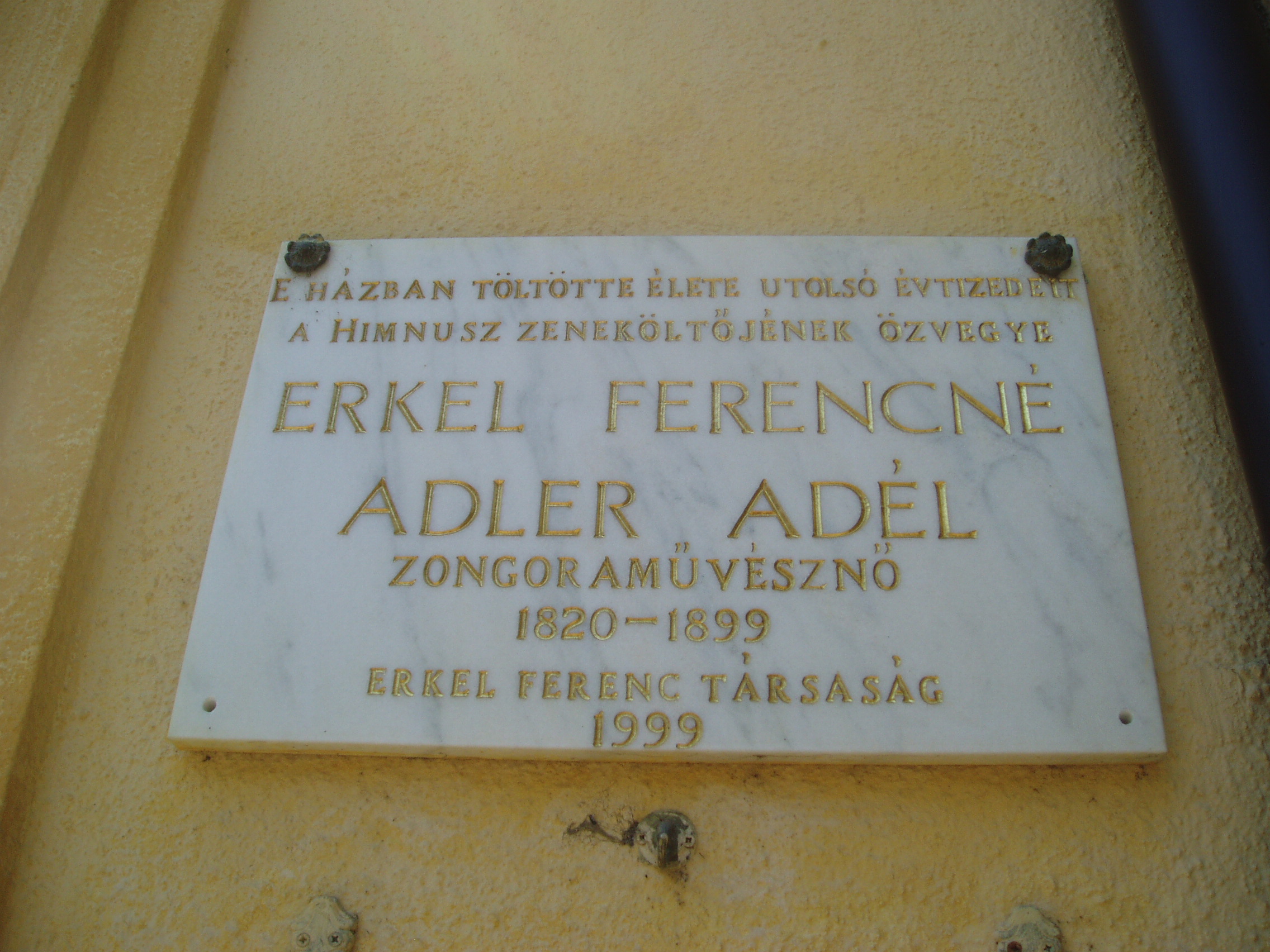 Nyilvános 1043 | 1552 | Gyula, Kossuth utca 30. | Az Almásy-kastélyhoz vezető kőhíddal egyvonalban, az utca túlsó oldalán álló földszintes lakóház egykor Erkel Rezső (Rudolf) vármegyei főorvos, Erkel Ferenc öccse lakása volt, ahol a zeneköltő is gyakran megfordult (János testvérük a szomszédban, a mai 28. szám alatt lakott). Jókai Mór két ízben is megfordult a házban. Először Laborfalvy Rózával 1848. augusztus 29-én kötött házasságuk után voltak a ház vendégei (Erkel Rezső korábban a Nemzeti Színház orvosa volt, onnét ismerték egymást). 1849 júliusában, a szabadságharc vége felé Jókai, Pestről elmenekülve az Erkel család vendégszeretetére bízta feleségét, akivel együtt volt a kor kiváló operaénekesnője, Schodelné Klein Róza is, akik a ház két udvari szobájában húzták meg magukat. Ide tért vissza Jókai feleségéért a világosi fegyverletétel után. Erről szól "Egy napom Gyulán" című szívszorító írása: "Ez volt életem legszomorúbb napja. 1849. augusztus 13-án nyitottam be a gyulai Erkel ház ajtaján ezzel a szóval: nincsen hazánk”. Jókai innét utazott álöltözetben, hamis papírokkal Tardonára. 1860-tól haláláig ebben a házban élt Erkel Ferencné Ádler Adél, miután különvált férjétől. Gyulán hunyt el, sírja a Szentháromság-temetőben van. Az épületen Erkel Rudolf, Ádler Adél és Jókai Mór emlékét márványtáblákon örökítették meg. A fénykép 2007 júliusában készült. Felh. irod.: Czeglédi Imre: Gyula útikalauz. 2. jav., bőv. kiad. Gyula, 1995 |