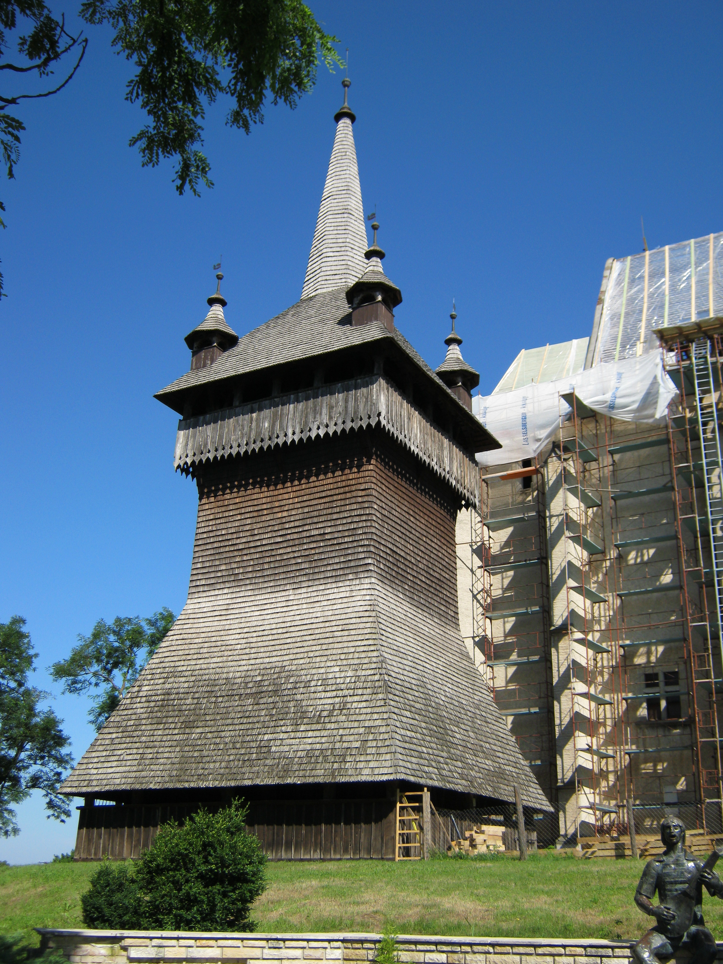 Nyilvános 930 | 1339 | Nyírbátor, Báthori utca 24. | A középkori református templom mellett áll az 1640 körül épült késő reneszánsz fa harangtorony, mely a Felső-Tisza vidékének hasonló építményei közül méretével és korával is kitűnik. Közel 30 méter magas, tiszta szerkezetű, szabatos ácsmunkájú alkotás. Galériája, valamint zsidnelyezett szoknyája miatt kissé bástyaszerű benyomást kelt. Felh. irod.: Látnivalók Szabolcs-Szatmár-Bereg megyében. Miskolc, Well-PRess, 1999 A fénykép 2010 augusztus elején készült. |