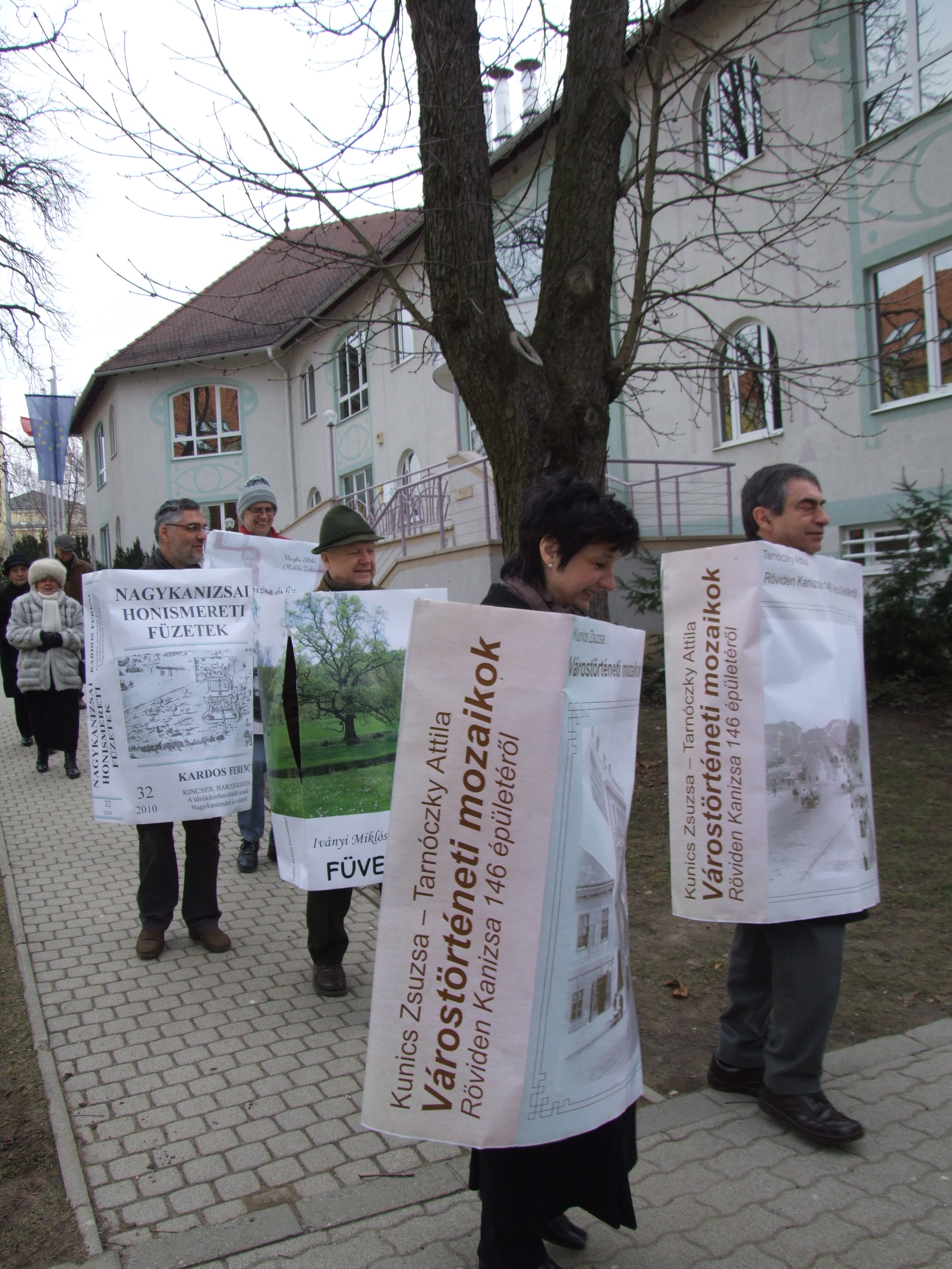 Nyilvános 1279 | 2738 | 2013. február 9. A farsangi fánkfesztiválra készülve felhívásban kértük olvasóinkat, hogy öltsék magukra kedves könyvüket. Egy „könyvespolcnyi” jelentkező vette magára kedves olvasmányát, az ő vonulásukról készültek ezek a képek. A környezetükben néhol láthatók a Nagykanizsai Gólyalábasok, akik szintén a könyvtárhoz kötődnek. A „felvonuló kötetek” a könyvtár épületében még megtekinthetők. | |