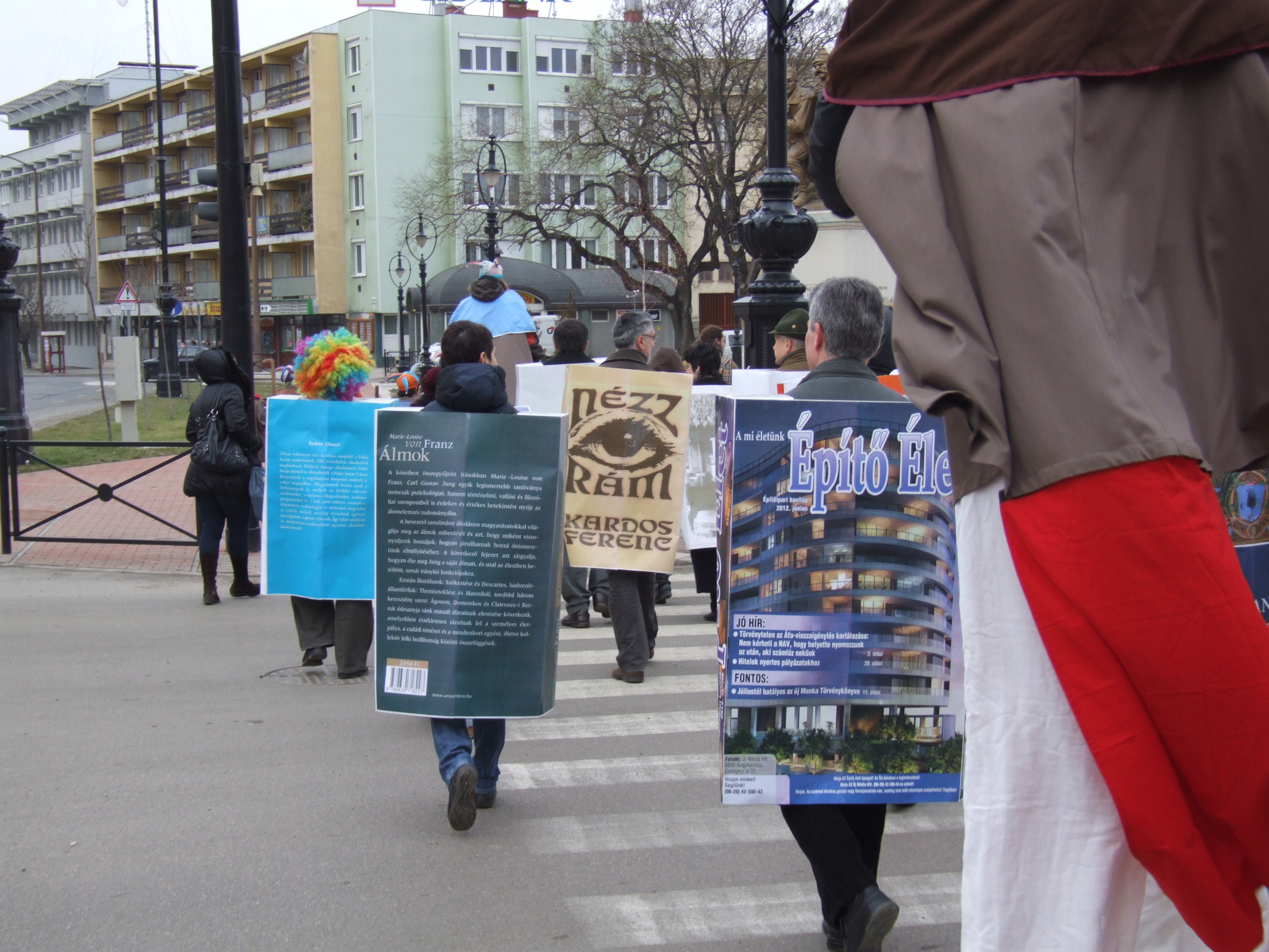 Nyilvános 998 | 1454 | 2013. február 9. A farsangi fánkfesztiválra készülve felhívásban kértük olvasóinkat, hogy öltsék magukra kedves könyvüket. Egy „könyvespolcnyi” jelentkező vette magára kedves olvasmányát, az ő vonulásukról készültek ezek a képek. A környezetükben néhol láthatók a Nagykanizsai Gólyalábasok, akik szintén a könyvtárhoz kötődnek. A „felvonuló kötetek” a könyvtár épületében még megtekinthetők. | |