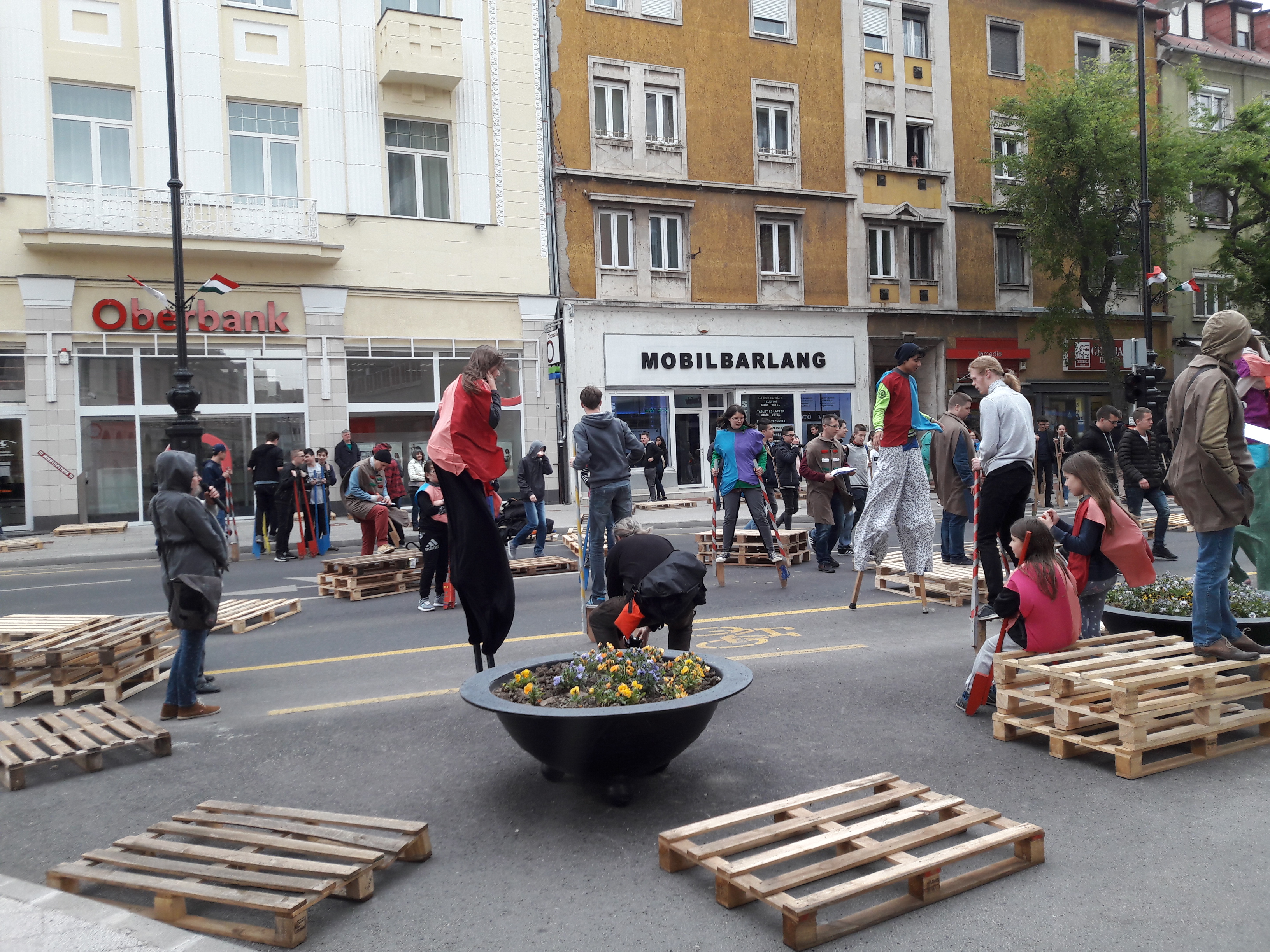 2017.04.27. Tömeges gólyalábra állás a Fő út - Ady u. kereszteződésében