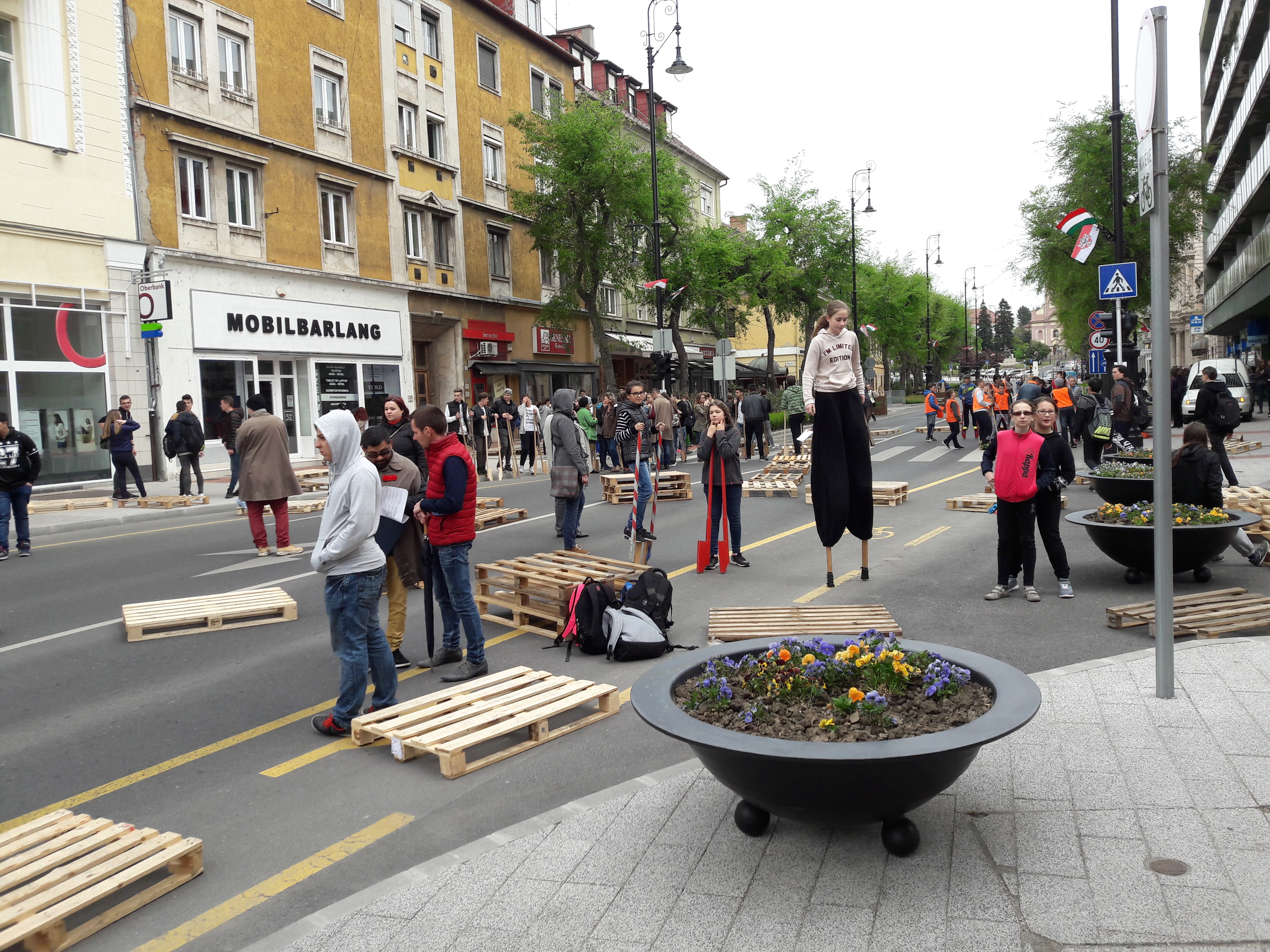 2017.04.27. Tömeges gólyalábra állás a Fő út - Ady u. kereszteződésében