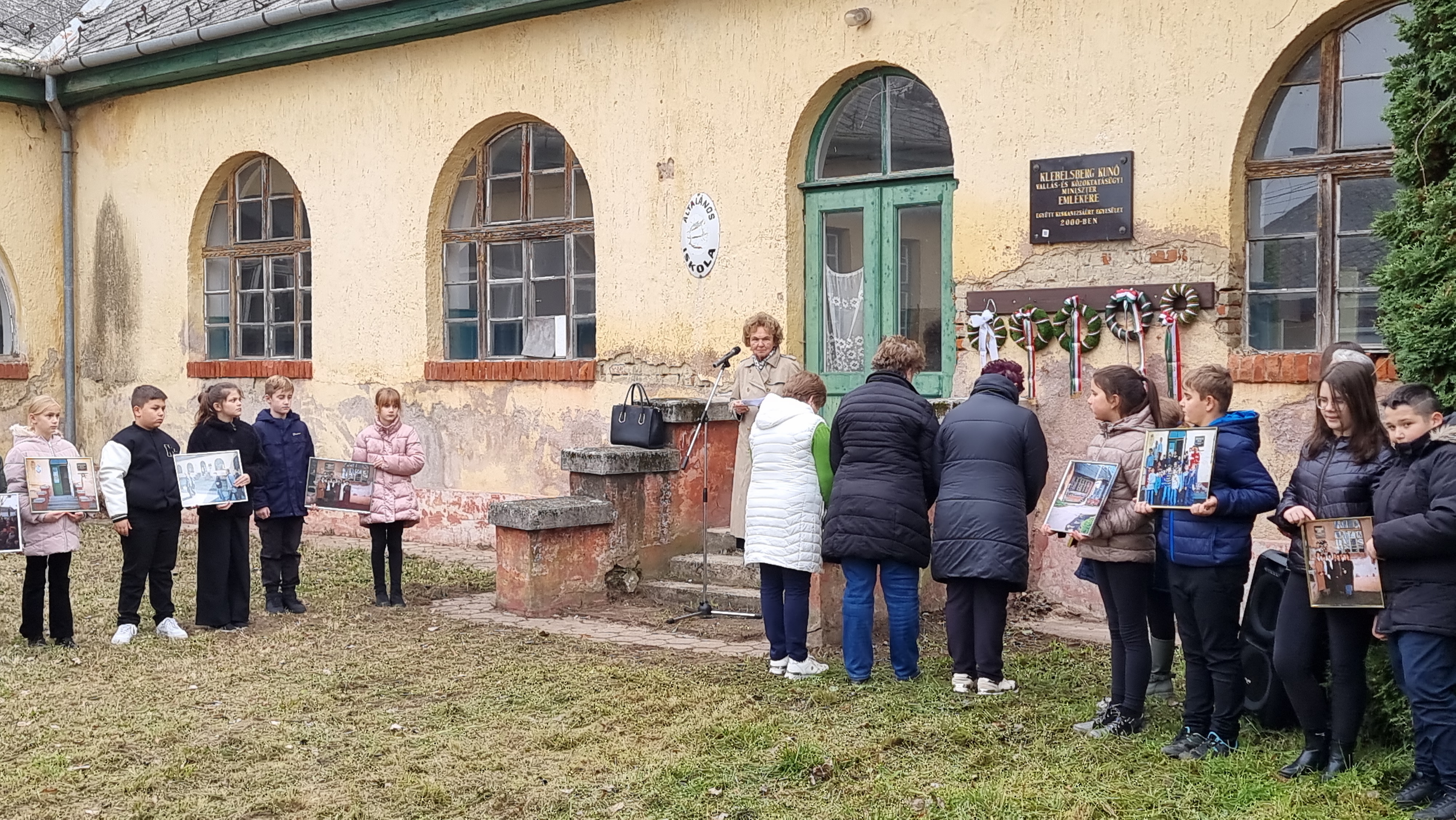 2025.11.11. Klebelsberg Kunó emléktábla koszorúzás és QR-kód felragasztás